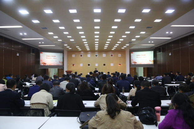 调研督导结束后,朱武凌以《不忘初心、牢记使命——聚焦为党育人、为国育才》为题,为我校全体校领导、中层管理人员以及党支部书记共计150余人讲授专题党课,党课由杨捷主持。