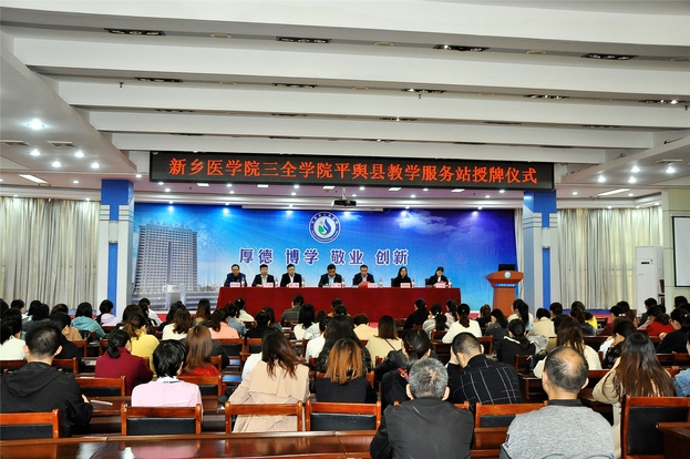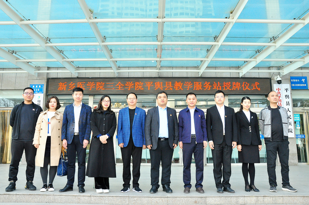 10月19日,我校在平舆县人民医院报告厅隆重举行新乡医学院三全学院平舆县教学服务站授牌仪式,我院党委副书记张钢,平舆县人民医院党委副书记、副院长张丰刚,副院长徐银领出席,我校继续教育学院、基础医学院等部门负责人参加。授牌仪式由平舆县人民医院工会主席于冬梅主持。