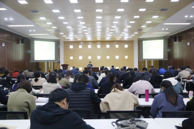 根据我校党委“不忘初心、牢记使命“主题教育工作安排,进一步贯彻落实“学、思、用”贯通,“知、信、行”统一的学习要求,10月25日上午, 我校邀请新乡医学院“习近平新时代中国特色社会主义思想”宣讲团成员、新乡医学院科技处人文社科办公室主任焦石文在行政楼三楼报告厅作《中国道路、中国方案与全球标识性话语体系转换》主题教育专题讲座,我校领导杨捷、王志凯、石永立、杜华贞出席,全体中层管理人员、党支部书记、辅导员共计160余人聆听。报告会由我校纪委书记石永立主持。