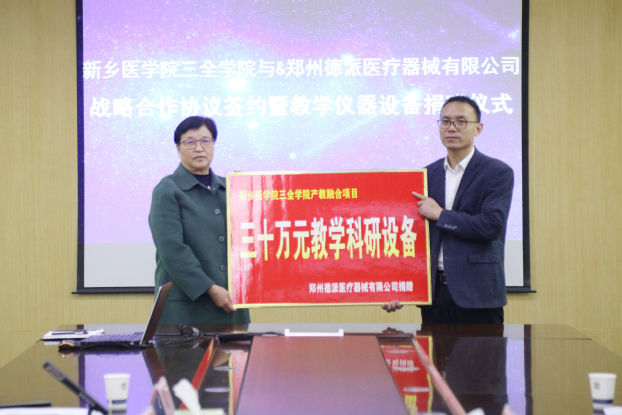 我校与郑州德派医疗器械有限公司举办战略合作协议签约暨教学仪器设备捐赠仪式