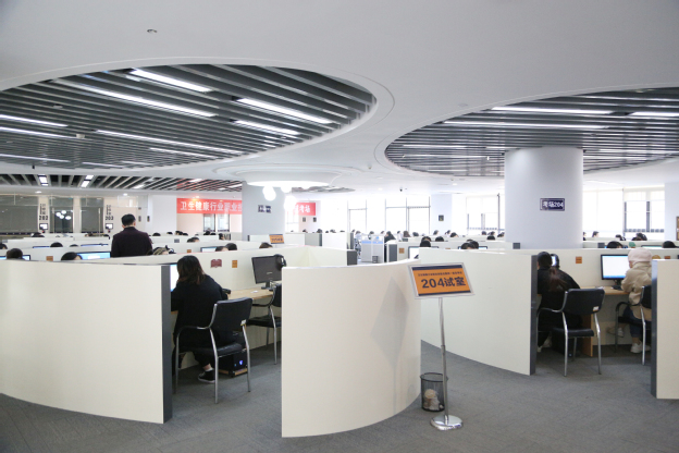 本次鉴定包括健康管理师理论与技能考试,我校设置图书馆、励学楼和医学工程实训中心3个考区,26个考场。巡查过程中,我校继续教育学院院长陈扬向督导组介绍了学校考务工作及开展情况,本次鉴定考试学校严格落实“标准化、制度化、流程化”考务建设指导思想,认真组织考务人员和系统管理员培训,并按照人机对话考试系统软硬件要求进行准备和调试,确保严格按照工作流程进行规范化操作。杜军平对我校严密有序的考试承办工作给予高度肯定,并指出此次考试准备充分,预控防控措施得当,考务人员、监考人员责任到位,确保了考场秩序的稳定和考试程序的规范。