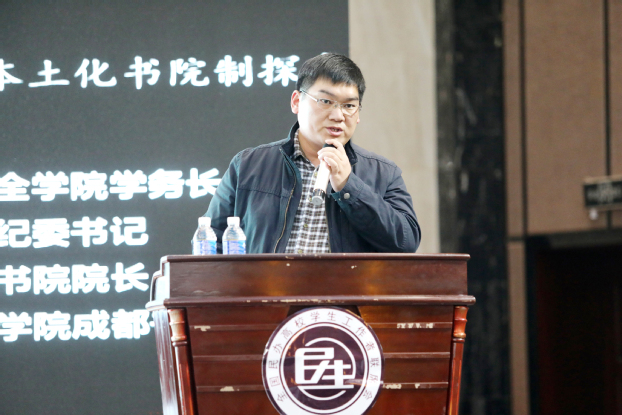 在报告中,邱永建结合习近平总书记在全国教育大会上的重要指示,以及国家中长期教育改革和发展规划纲要指出,高校作为人才培养的重要阵地,要自觉承担起立德树人的重任,在高校发展建设中,要坚持以人民为中心的发展教育,从外延式建设转变为内涵式建设,积极探索校本化的办学特色,全面提高育人质量,坚持走可持续发展的道路。他进一步结合我校具体情况,分别从双院制改革、书院发展建设与独特育人理念、通识教育的探索和实施、辅导员等级化管理与考核、学业导师制建设四个方面,详细介绍了我校在学生公寓管理创新与本土化书院制探索方面的举措和成效。