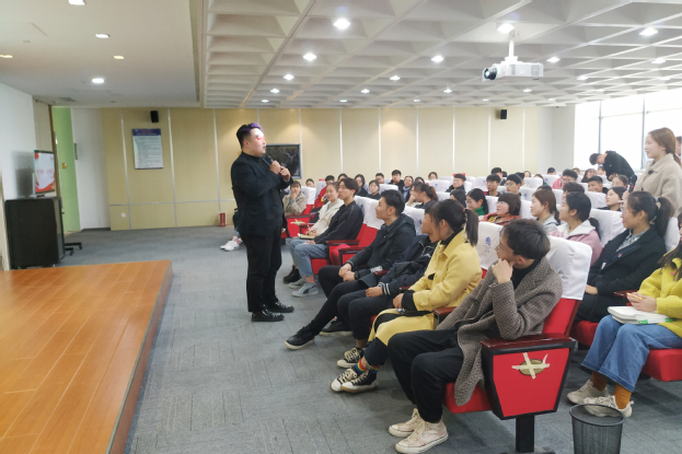 崇德书院第三届主席王晗主要讲解了自己的创业经历,他说,毕业之后,自己开始创业并成立了一家医院,在多方的努力下,目前医院运营良好。当听到他的报告时,很多学生都情不自禁地说“哇,太强了”,王晗笑着说,“只要相信自己,你们也可以的。我一直比较信奉的一句话就是,这世界成功的没有绝对的对与错,对与错只是自己走出来的。永远不要一味走别人的老路子,不要坚信别人都是对的,如果一味的对着别人来做自己,你只会成为下一个失败者……”现场响起阵阵掌声。
