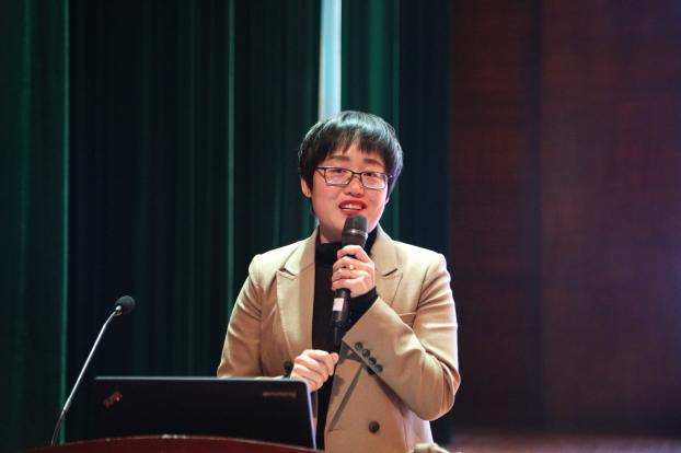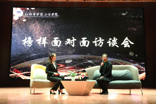随后上台的是在教学和科研一线坚守的卢龙斗教授和青年教师苗莹莹。作为生科院的院长,卢龙斗教授带领青年教师团队取得了许多科研上的成就和突破,创立“3+1”育人模式。他组建团队,凝练方向,打造平台,实现了七项突破;不断创新教学形式,创新科研设计。他说:“我从年轻人身上学到了很多,年轻人有冲劲、有干劲。搞科研也应该拥有勇往直前、敢为人先的创新精神;三全学生要有跳两跳、跳三跳摘桃子的精神。”卢龙斗寄语全体教师都能够不忘初心,牢记使命,勇于担当,做一个合格的、优秀的教师。苗莹莹讲述了她日常教学和举办全科医生技能大赛、解剖绘图大赛的心得。她说:“教师要学会克服困难、兢兢业业,立足本职工作不断提升自己,做到与时俱进,精益求精。虽然人体结构不变,但临床医学课程在变,坚持备课并及时更新知识库,讲课不能一成不变,要学会开拓创新。日后学生再碰到各种各样的病例,会处理的更加游刃有余。”爱是相互的,给学生足够的爱,这就是她的秘诀。