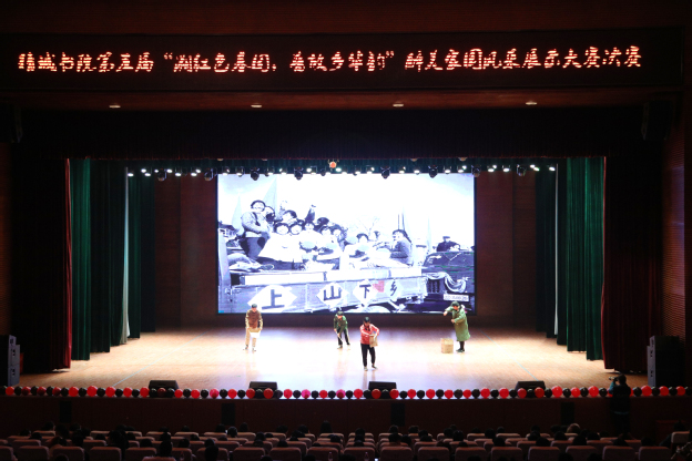 这是我校精诚书院第五届“醉”美家国的“红色课堂”近日在闻德礼堂上演。该课程以“溯红色基因,谱故乡华韵”为主题,经过初赛、复赛层层选拔,选取我校前36名学生进入决赛,六人一队,分别选取京津冀、沪浙、大别山、黔北黔西、鲁苏皖、陕甘宁六个红色基地区域,以舞蹈、话剧、时空穿越、三句半等形式呈现。在此之前,队员们通过两个月地观摩调研、座谈讨论、查阅历史等形式,详细了解学习红色基地的足迹历史和革命精神,利用“红色课堂”,追寻红色足迹,讲述红色故事,重温红色初心,勇担红色使命。