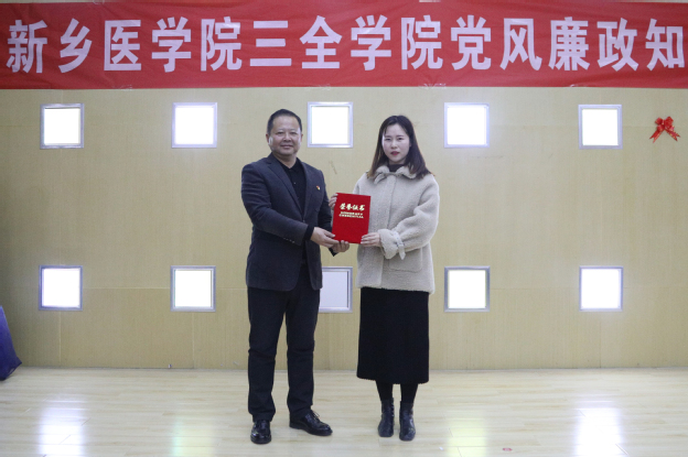 为贯彻党的十九大精神和党中央重大决策部署,进一步弘扬“不忘初心 牢记使命”主题教育,增强廉洁意识,切实增强廉洁自律意识,永葆共产党人清正廉洁的政治本色。11月27日,由中共新乡医学院三全学院委员会主办,纪检监察审计部、德馨书院党总支联合承办的党风廉政知识竞赛在平原校区行政楼学术报告厅举行。我校纪委书记石永立出席,纪检监察审计部负责人及各个党总支代表队参加。