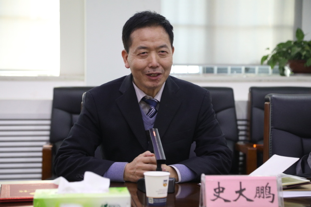 首先,胡仕坤对史大鹏教授的到来表示热烈欢迎,并向他介绍了学校的发展历程及概况、学科专业建设、办学成果和发展规划。他着重介绍了我校两个校区的办学模式,以及现有的院系和机构设置,和“书院+院系”的“双院制”全新育人模式。胡仕坤表示,我校秉承“全面适应社会需求,全面实施素质教育,全面培育医学英才”的办学指导思想,坚持建设地方性、高水平、有特色、应用型的新型高等医学院校的发展目标,不断推进学校向前发展。之后,胡仕坤又向与会人员介绍了史教授的履历。