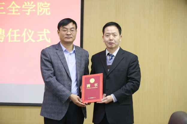 12月10日上午,我校在平原校区行政楼第三会议室举行了史大鹏教授的聘任仪式。学校院长胡仕坤、教务长杜华贞出席,医学影像学院、人力资源部、总务部负责人及医学影像学院教师代表参加。聘任仪式由人力资源部主任李森主持。
