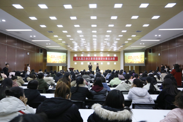 12月17日晚,由我校外语系主办、仁智书院承办的第九届“三全之星”英语演讲比赛决赛在平原校区行政楼三楼学术报告厅举行。我校教务长杜华贞出席,相关部门负责人及近200名师生共同观看。