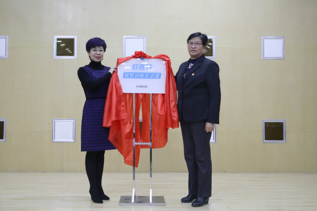 最后,杜华贞和李丽媛为欧普特视觉训练实训室揭牌。揭牌仪式结束后,李丽媛、高祥璐先后为2019级眼视光学专升本学生进行《视觉训练》课程授课,他们围绕视觉训练的历史、视觉训练在国内外的发展及临床应用、COVD及美国视光、视觉训练的价值内涵及未来、神经系统的可塑性与视觉训练等方面展开深入细致讲解。后续万沛珠将继续为学生进行为期一天半的理论及实验授课,让学生对视觉训练相关知识有进一步认识和了解,让每一位学生真正享受到产教融合、校企合作带来的益处。