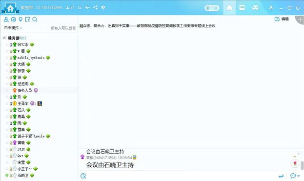 2月3日上午,为进一步贯彻《教育部关于2020年春季学期延期开学的通知》、省教育厅《高等学校网上教学工作实施意见》精神,切实落实《新乡医学院三全学院新型冠状病毒感染的肺炎疫情防控指挥部通知2号》文件要求,教务部召开疫情防控期间教学工作安排专题线上会议。我校副院长袁磊、教务长杜华贞出席,教务部全体人员参会。会议由教务部主任助理石晓卫主持。