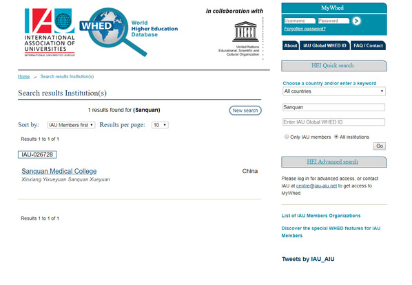 近日,我校成功加入国际大学协会(International Association of Universities)与联合国教科文组织共同建立的世界高等教育数据库(World Higher Education Database)。这是我校实施国际化发展战略,为有效提升学校国际影响力迈出的崭新而坚实的一步。