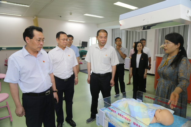 首先,调研组一行在校领导陪同下参观了我校新时代学习馆,工作人员对“不忘初心学党史”、“继续前行知党情”等六大专题展区进行了介绍。随后到图书馆、护理学院、崇德书院、精诚书院,对校园文化建设进行实地调研。