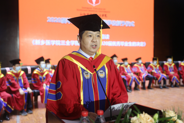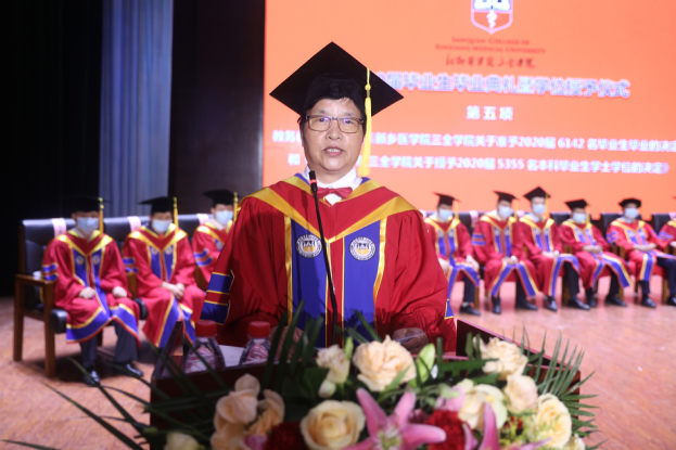 随后,教务长杜华贞宣读了《新乡医学院三全学院关于准予2020届6142名毕业生毕业的决定》和《新乡医学院三全学院关于授予2020届5355名本科毕业生学士学位的决定》,为同学们的学业之路镶嵌了专属的“全”徽章,让所有毕业生内心再一次坚定了作为医学生的前行之路。