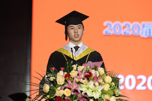 羲和书院李玉辉同学代表2020届毕业生表达了“三全新一代”感恩老师、学校的赤诚之心。讲述了他在三全平凡而又不凡的大学生活,回忆了教学楼内探索求知的三全时光,表达了自己敬畏生命、肩负医学生使命的决心,愿与所有三全学子做最有活力的“后浪”,向着更广阔的河流奔涌!