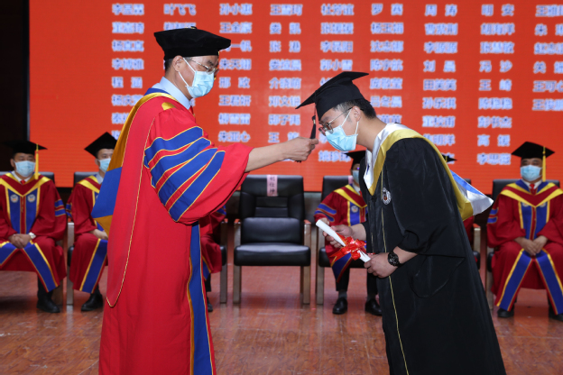 接着,在神圣庄严的氛围中,全体毕业生迎来了最具仪式感的时刻,胡仕坤为现场全体毕业生扶正流苏,授予学士学位。镜头记录下的这一刻,让同学们隔着屏幕也可以尽情感受着这份光荣与骄傲。
