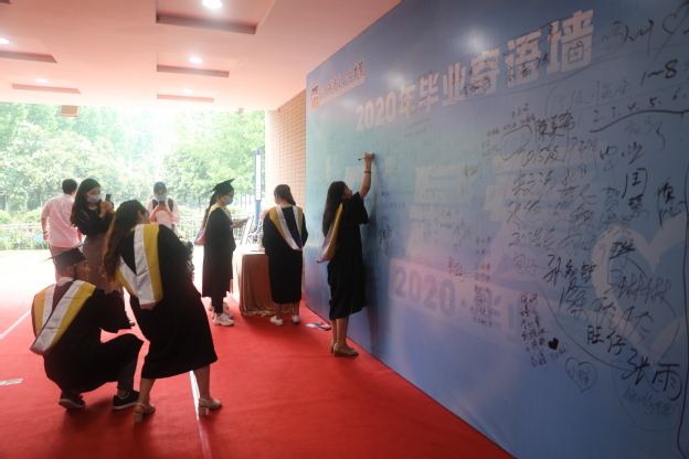 学生在签名墙上留下毕业寄语
