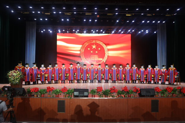 院长胡仕坤为现场全体毕业生授予学位 扶正流苏