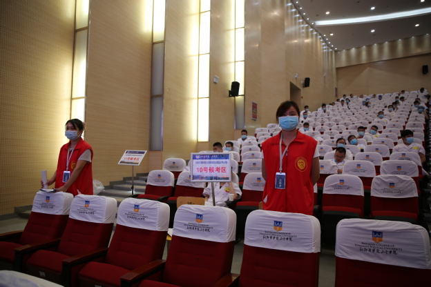 在考场内外,党员志愿者也是一道亮丽的风景线,他们活跃在各个需要的角落,为做好各种保障服务尽心竭力。来自继续教育学院的党员志愿者周瑞丹主要负责交流中心的候考区的志愿工作,她说:“所有的党员志愿者都有明确的分工,比如在考场内,志愿者们主要负责考前考生身份核查和引导,保证各组考生互不见面,禁止同组考生交流考核内容,同时做好引导、后勤保障等工作。”