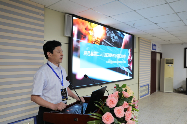 王铁珍做了《医教协同,助力医院高质量发展》报告,邱永建做了《以硕士点共建为抓手,推动学科和科研建设》的报告,我校教务部主任助理石晓卫做了《以创新人才培养模式为纽带助力基层医疗事业发展》报告。