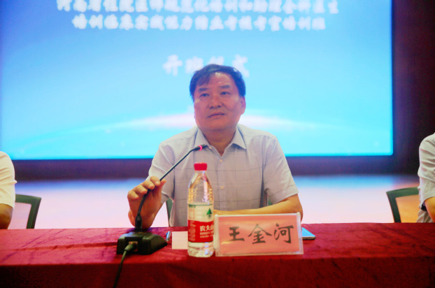 王金河发表重要讲话,他首先感谢新乡医学院三全学院和河南省住培中心对此次考官培训班的周密准备。他指出,我们目前全面实施的住院医师规范化培训制度是医学生毕业后教育的重要组成部分,对于培训临床高层次医师,提高医疗质量极为重要,是医学临床专家形成过程的关键所在。助理全科医生培训是立足现实国情,在现阶段加强基层全科医生培养的补充措施,也是提高基层医疗卫生服务能力的现实选择,助理全科医生的规范化培训将为我国日后全科医生队伍建设奠定基础。而结业考核是规范化培训的重要一环,不仅是对规范化培训工作的最终检验,也为我省医改相关决策的制定提供了重要参考,如此重要的工作环节,必须要有一批德才兼备、业务精湛的专业考务人员来实施执行,这样才能保证我们此项工作的规范、标准、有效。最后,王金河对参加此次培训班的学员提出三方面的要求:一是要统一思想,提高站位,强化对此次考官培训工作重要性的认识;二是希望各位考官学员能够明确任务,切实提高执考能力;三是严肃纪律,严把第一道质量关,确保培训工作取得实效。