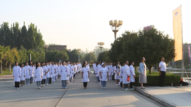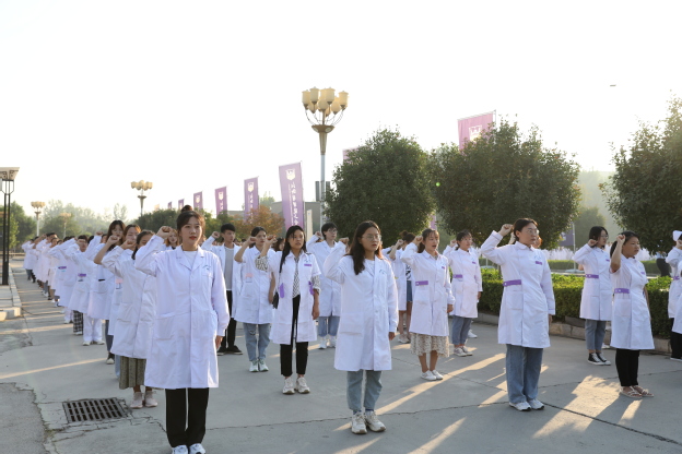 “我决心竭尽全力除人类之病痛,助健康之完美,维护医术的圣洁和荣誉,救死扶伤,不辞艰辛,执着追求,为祖国医药卫生事业的发展和人类身心健康奋斗终生。”重温医学誓词,不忘医学医初心,仪式在铿锵有力的宣誓中落幕。