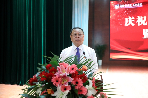 院长胡仕坤发表重要讲话。他代表学校领导班子,向长期以来默默耕耘在教学、科研以及管理服务等各条工作战线的全体教师、教育工作者致以节日的祝贺和崇高的敬意,向受到表彰的先进集体和个人表示热烈的祝贺。他说,2019年以来,学校转型发展进程持续加快,在“申硕”、教育教学改革、人才队伍建设、产教融合等工作上取得了关键突破,办学水平和发展成绩倍受社会各界关注和好评。胡仕坤向广大教职工提出了三点建议:一是坚持以德为先,提升修养,弘扬和传承奉献精神。不断加强个人道德修养,深入学习领悟习近平新时代中国特色社会主义思想,切实践行社会主义核心价值观;二是落实根本任务,潜心从教,助力学子们成长成才。积极探索新时代教育教学方法,不断提升教书育人本领,持续关注新技术发展,时刻关注学子们的思想状况、学习状态和生活状态;三是强化研究意识,潜心治学,提升科学研究能力和水平。教学和科研相辅相成,要确立治学理念,增强科学研究意识,在提升教育教学质量的同时,努力提升科研水平和教学质量。