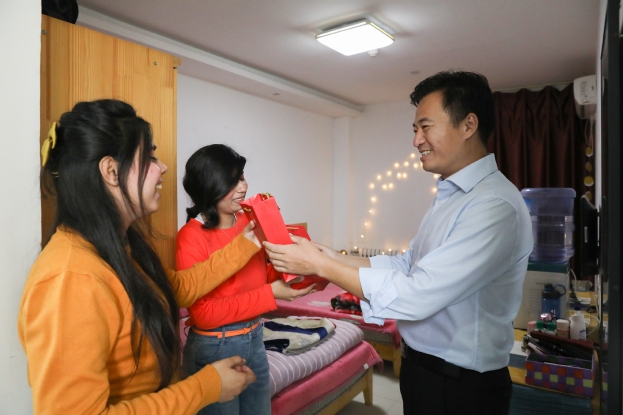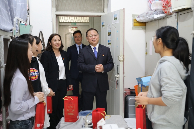 9月30日上午,我校党委书记杨捷,院长胡仕坤,党委副书记吕莎,副院长马波、顾欢、袁磊,教务长杜华贞等校领导及相关职能部门负责人前往德馨书院、崇德书院、国际学生公寓等处,为同学们送去学校的祝福和问候。