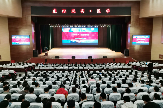 基于新医科建设理念,为拓展学生新技术新理念视野,提升学生创新思维,搞好新生开学第一课。2020年10月20日下午,我校邀请中国医科大学教授,我校智能医学研究院院长娄岩开展“VR/AR+医学教育”主题讲座,讲座在闻德礼堂开展,由智能医学工程学院靳瑞霞老师主持,临床医学、生物医学工程、电子科学与技术、假肢矫形工程、数据科学与大数据、智能医学工程等多个专业500多位学生参加。