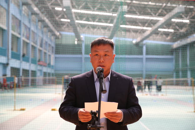裁判员代表王嘉伟宣誓。他表示将严格遵守比赛章程,公平公正地进行裁决,尊重运动员,尊重客观事实,以良好的道德风尚和专业的裁判素质确保比赛顺利进行。