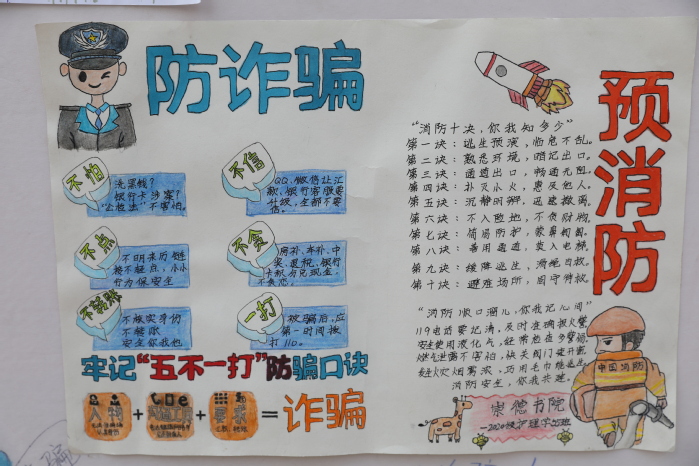 我校长期以来高度重视防范电信网络诈骗,采取宣传、“五进”(进教材、进课堂、进头脑、进社区、进活动)等多种形式,有效宣传了防范电信网络诈骗工作,确保学校师生财产不受损失。本次宣传活动采用“线上+线下、理论+实践”的方式,内容涵盖师生日常学习与生活安全、人身财产安全、网络电信安全等方面,同学们通过手抄报、短视频的形式,将学到的理论知识转化为实践成果,内化于心,外化于行,筑牢学生财产安全和人身安全的“心堤”,真正做到网络诈骗、消防安全入脑入心。