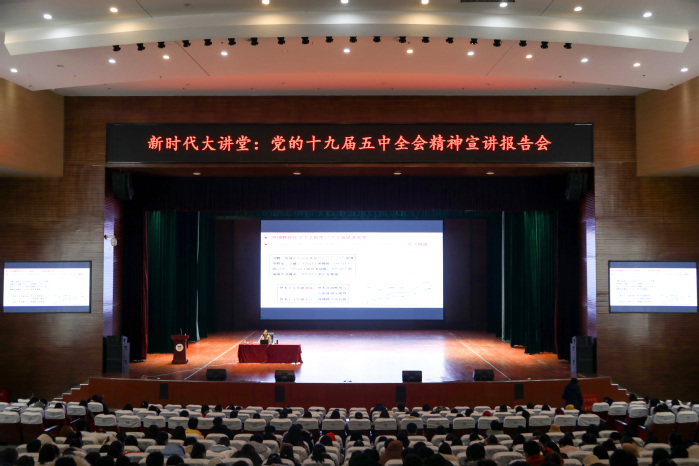为深入学习贯彻党的十九届五中全会精神,推动党的理论创新成果入脑入心,12月25日上午,我校邀请省委党校姚巧华教授为900余名师生进行全会精神的详细解读。校党委副书记吕莎主持宣讲会。