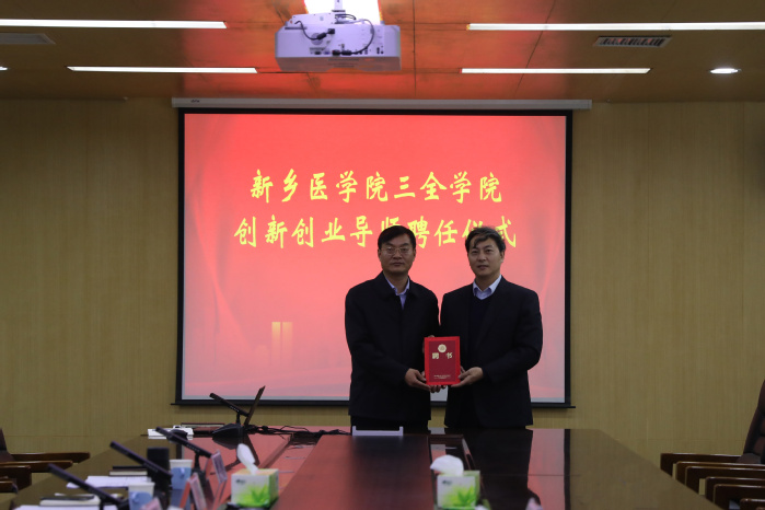 12月24日上午,我校在平原校区行政楼第三会议室隆重举行创新创业导师聘任仪式,河南省大中专学生就业服务中心就业创业部主任、高校创业就业指导专业副教授、《中国大学生就业》杂志特约编辑、SIYB中国项目河南省派创业培训师、郑州市大众创业导师文正建被聘为我校大学生创新创业指导老师。院长胡仕坤、副院长顾欢出席,相关职能部门负责人出席。学务部主任助理张帆主持会议。