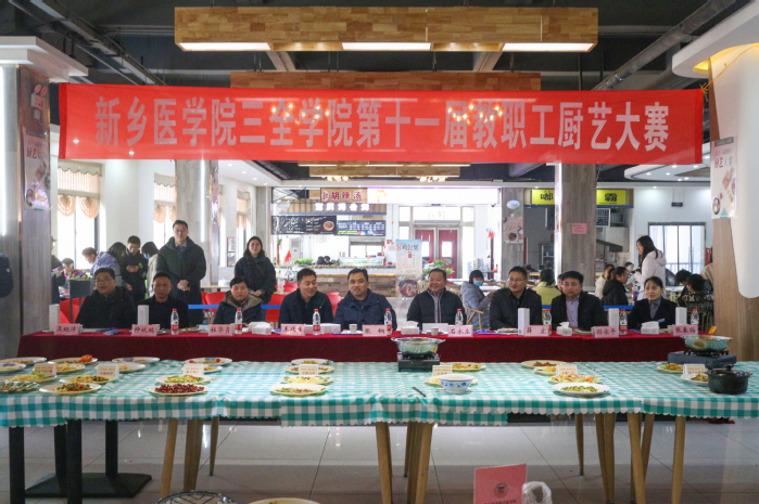 为推进校园文化建设,帮助全体师生树立健康饮食的理念,12月31日中午,我校第十一届教职工厨艺文化活动在平原校区东苑餐厅二楼新希望美食广场举行。本次比赛邀请河南省食文化研究会专业委员会副会长孙宗平、安阳市餐饮协会会员吴虹涛、餐饮行业职业经理人高级服务师张春梅、山东省餐饮业协会会员仲从瑞担任评委,我校领导党委副书记张钢、纪委书记石永立、副院长王延生、副院长薛宏、教务长杜华贞出席,数百名师生现场观看。