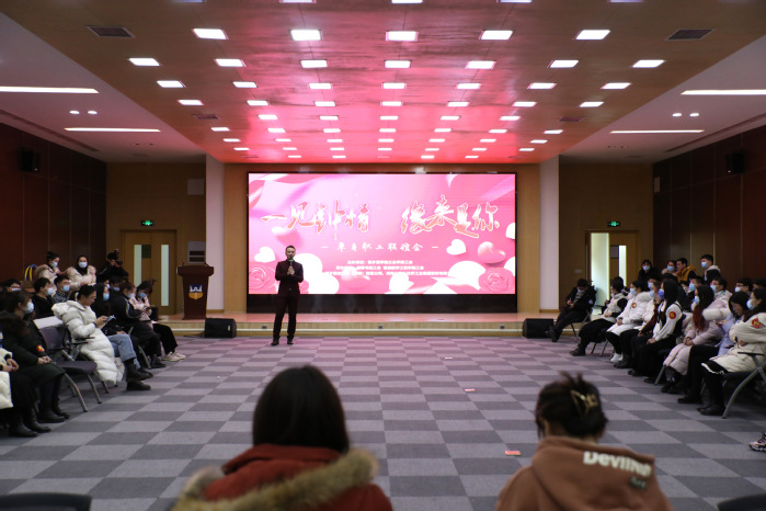 为给单身职工提供交友机会,搭建情感交流平台,丰富单身职工精神文化生活,1月8日,由校工会主办,德馨书院工会和智能医学工程学院工会承办的“一见钟情,缘来是你”相亲联谊会在行政楼学术报告厅成功举办。来自我校及航空工业新乡航空(集团有限公司)、河南心连心化工集团有限公司的近百名单身职工欢聚于此。