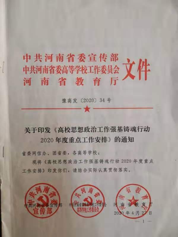 5月,学校被河南省委宣传部、省高工委确定为书院制建设试点单位。7月,精诚书院获批河南省大学生校外实践基地,崇德书院获批河南省高校网络文化建设精品项目。11月,智行书院核心区建设完成,形成书院社区建设样板。12月,《聚焦立德树人,构建书院制育人体系》、《“四维”联动,画好思政育人“同心圆”》分别荣获河南省普通高等学校学生工作优秀成果二等奖、三等奖。新冠疫情肆虐,优秀学子挺身而出,我校学子郝莺歌、李鋆、桂云飞、孙于洁坚守在武汉进行病毒检测,王金墙、任国栋在武汉方舱医院救治病患,另有朱飞阳、王静、史新宇、李雅静等学子各地参与抗疫工作。勇救落水儿童的林群、坚持为抑郁症患者写歌的关海洋、紧急时刻勇敢救火的孙浩舰、见义勇为制止冲突的赵严佳、拾金不昧的彭家晟等,被主流媒体广泛报道,充分展现了我校三全育人、双院育人的成效。