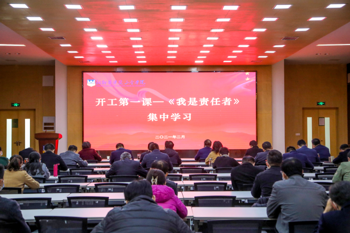 为贯彻落实习近平总书记在党史学习教育动员会上的讲话精神,学史力行,开启2021年新征程。2月23日上午,我校在平原校区学术报告厅组织理论学习中心组第一次扩大学习会暨2021年首次管理干部培训。全体校领导、各职能部门中层管理人员参加了此次会议。学习会首先集中观看学习行动教育董事长兼CEO李践视频直播课《我是责任者》。