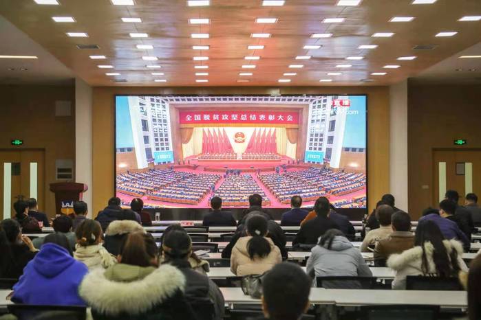 2月25日上午,全国脱贫攻坚总结表彰大会在北京人民大会堂隆重举行。我校党委书记杨捷、院长胡仕坤带领学校党员干部、师生员工以多种形式收看表彰大会的实况直播,共同见证中华民族脱贫攻坚的伟大胜利。