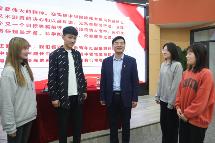 最后,胡院长指出:“伟大的事业需要伟大的精神。在实现中华民族伟大复兴的征途上,事不避难、义不逃责的决心和以身许国、无私奉献的行动,支撑我们向着一个又一个目标勇毅前行。在这场疫情大考中,我们在不断地磨砺责任担当之勇、科学防控之智、统筹兼顾之谋、组织实施之能。在与疫情的正面交锋中,我们看到一批批青年扛起最艰巨的任务,他们在疫情中成长,在成长中蜕变,在蜕变中领悟生命的意义,战疫的洗礼与淬炼、崇高的追求,都将书写我们青春的华章!”