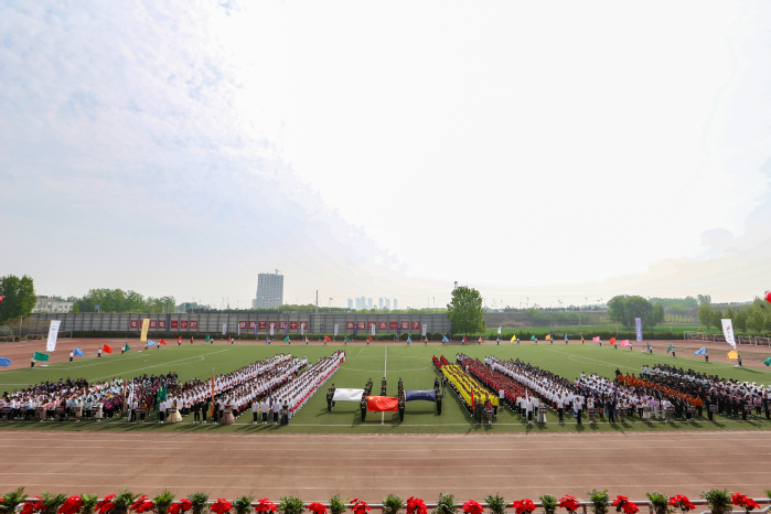 阳光明媚,绿草如茵。4月15日上午,我校第十六届运动会开幕式在平原校区风雨操场举行,校党委书记杨捷,纪检员王志凯,教育总督导毛兰芝,纪委书记石永立,党委副书记吕莎,副院长马波、邱永建、王延生、薛宏、顾欢、袁磊,教务长杜华贞,副院长王之玺出席。各院(系、部)、书院和职能部门的负责人、裁判员及运动员共4000余人参加。开幕式由院长办公室主任助理申大鹏主持。
