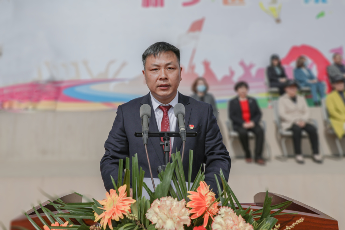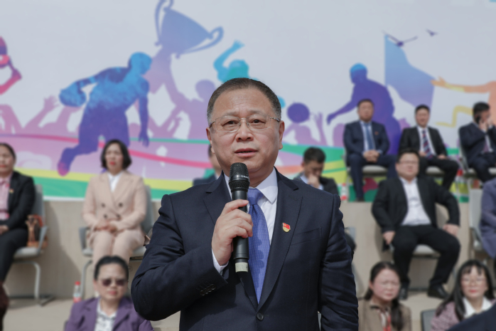 学校体育运动委员会委员、本届运动会组委会主任委员袁磊致开幕辞。为确保本届运动会安全、有序、高效地进行,他提出了三点要求:第一,要注意防范,安全第一。疫情仍处于常态化的防控阶段,同时春季也是传染病的多发期,同学们应做好疫情防控和个人防护,避免出现不可控制的意外。第二,要赛出风格,友谊第一。所有参与人员都能以“更高、更快、更强”的奥林匹克精神和阳光健康、乐观进取的体育精神,赛出成绩、赛出友谊。第三,要坚持运动,强健体魄。借助比赛的契机,帮助全体师生养成常态化的健康运动习惯,在运动中享受快乐、强健身心。