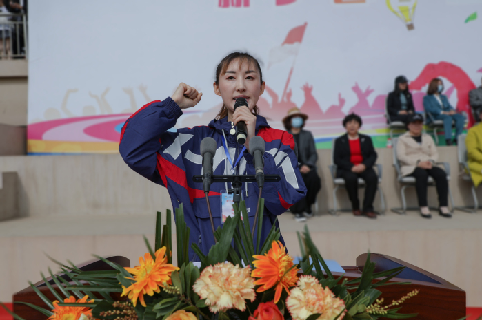 裁判员代表柳佳、参赛运动员代表王伟鹏郑重宣誓。他们向学校领导、老师、工作人员致以诚挚的感谢,并预祝参赛运动员取得优异成绩。