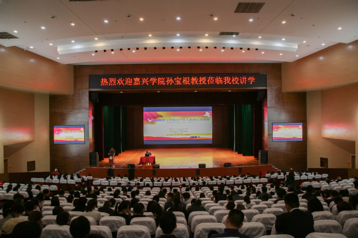 4月14日上午,我校第二场党史学习教育系列讲座在平原校区闻德礼堂举行。教育部人文社会科学重点研究基地——嘉兴学院中国共产党革命精神与文化资源研究中心(红船精神研究中心)孙宝根教授应邀做《红船精神与中国共产党人的初心和使命》专题讲座。全体校领导、中层管理人员、党支部书记、教职工党员代表及学生党员代表800余人参加,讲座由党委副书记张钢主持。