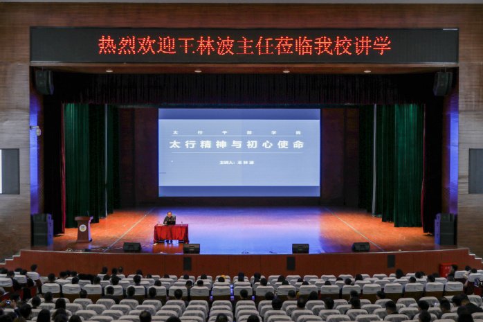 4月13日下午,太行干部学院教务部主任王林波受邀以《太行精神与初心使命》为题做专题讲座,全体校领导、中层管理人员、党支部书记、教职工党员代表及学生党员代表800余人参加,讲座由党委副书记张钢主持。