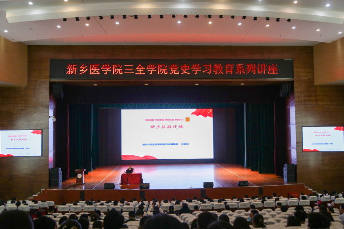 4月15日下午,我校在平原校区闻德礼堂举办党史学习教育系列讲座第三讲。原新乡市委党史研究室孙建设副主任应邀作题为《新乡抗战述略》专题讲座。全体校领导、中层管理人员、党支部书记、教职工党员代表及学生党员代表800余人参加,讲座由党委副书记张钢主持。