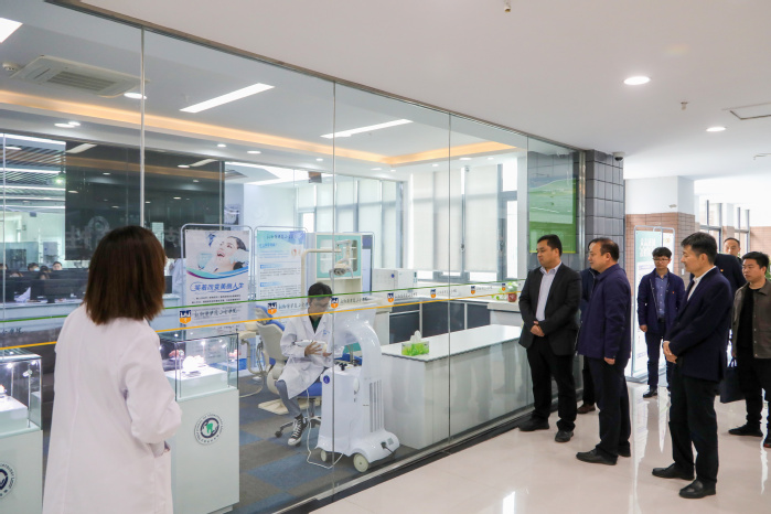 会前,李炳双一行前往我校口腔医学技术实训中心、康复医学院参观考察,口腔技术学院副院长张紫阳、教师石鹏霏,康复医学院副院长袁志垚分别介绍了本院系教学、科研及产教融合情况。