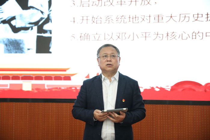 接着,杨书记以中国共产党在不同历史时期完成的若干重大事件为线索,讲述了党的百年光辉历程。从中国共产党的成立到创建井冈山革命根据地,到红军两万五千里长征,中国共产党从弱小到壮大,逐步成长为领导中国人民进行抗日战争的中流砥柱,成为中国革命赢得最后胜利的中坚力量。从中华人民共和国成立到抗美援朝,从党的十一届三中全会胜利召开到改革开放,从香港、澳门回归祖国到党的十九大胜利召开,中国共产党带领中国人民一步步站起来、富起来、强起来,中华民族再次以昂扬的姿态屹立于世界民族之林。