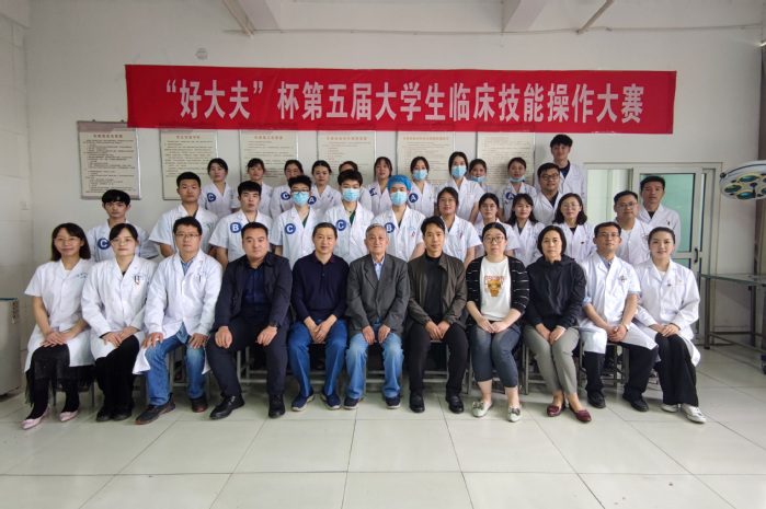 “尚德精术培养医学优秀人才,悬壶济世助力中原卫生发展。”5月16日下午,“好大夫”杯第五届大学生临床技能操作大赛决赛在新乡校区临床能力训练中心举行,来自精诚、羲和、仁智、崇德四个书院的6支参赛队共18名临床医学专业选手展开激烈对决。郑州市第七人民医院主治医师詹学斌、郑州中心医院副主任医师侯国军、省直三院副主任医师齐路、新乡市第二人民医院主任医师俞星火等12位临床专家和骨干教师共同担任评委,校外聘专家严新志教授担任总评委。我校副院长袁磊及部分教学医院的领导、好大夫教育集团副总裁刘光辉、临床学院全体教师现场指导观摩。