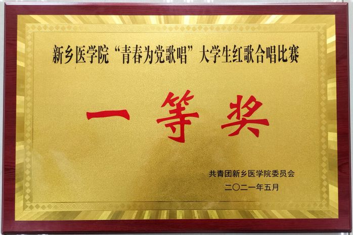 5月19日晚,在新乡医学院北校区体育馆举办的“青春为党歌唱”大学生红歌合唱比赛中,我院喜获一等奖。