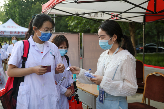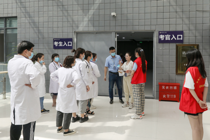 为周密组织本次考核工作,学校成立考核工作领导小组,细化工作方案,制定突发事件应急预案,制定详细的专项工作方案。按照河南省卫生健康委员会统一要求,做好疫情防控,试卷印刷、存放,准备考试物品,安排、布置考场,培训考务人员,落实保密和安保措施,确保考务工作安全有序、规范稳妥进行。做好后勤服务,为候考的考生准备了饮用水和免费午餐。党员志愿者们分工明确,通力配合,尽心竭力做好各种保障服务。先进的场地设备、严密的考务组织、周到细致的服务受到考官和考生的一致赞扬。